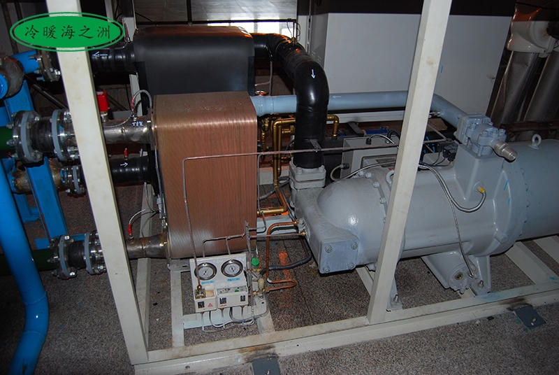 蒸發器中的液態制冷劑吸收水中的熱量并開始蒸發,液態制冷劑亦蒸發變為氣態后被壓縮機吸入并壓縮,氣態制冷劑通過冷凝器吸收熱量,凝結成液體,通過熱力膨脹閥(或毛細管)節流后變成低溫低壓制冷劑進入蒸發器,完成制冷劑循環過程。